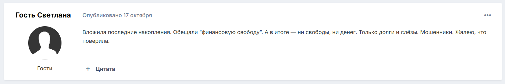Проект активно рекламирует высокую доходность и быстрый рост капитала. Но, как показывают отзывы, на деле всё гораздо сложнее. Когда пользователи пытаются вывести деньги, появляется стандартная история: “проверка данных”, “технические работы” и “необходимость комиссии”. Часто эти препятствия приводят к тому, что деньги так и не возвращаются.