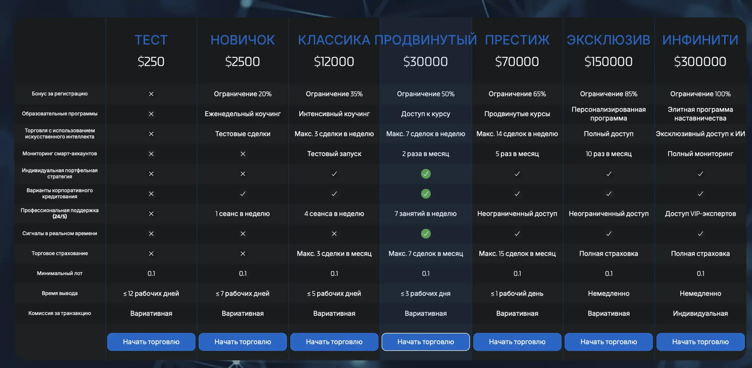 На сайте Fintrionyx Capital представлены типичные маркетинговые обещания: возможность участвовать в торговле активами, инвестиционные планы с высокой доходностью и условие «для всех» входа. Слово «Capital» в названии добавляет авторитета, а оформление веб-ресурса — солидности.