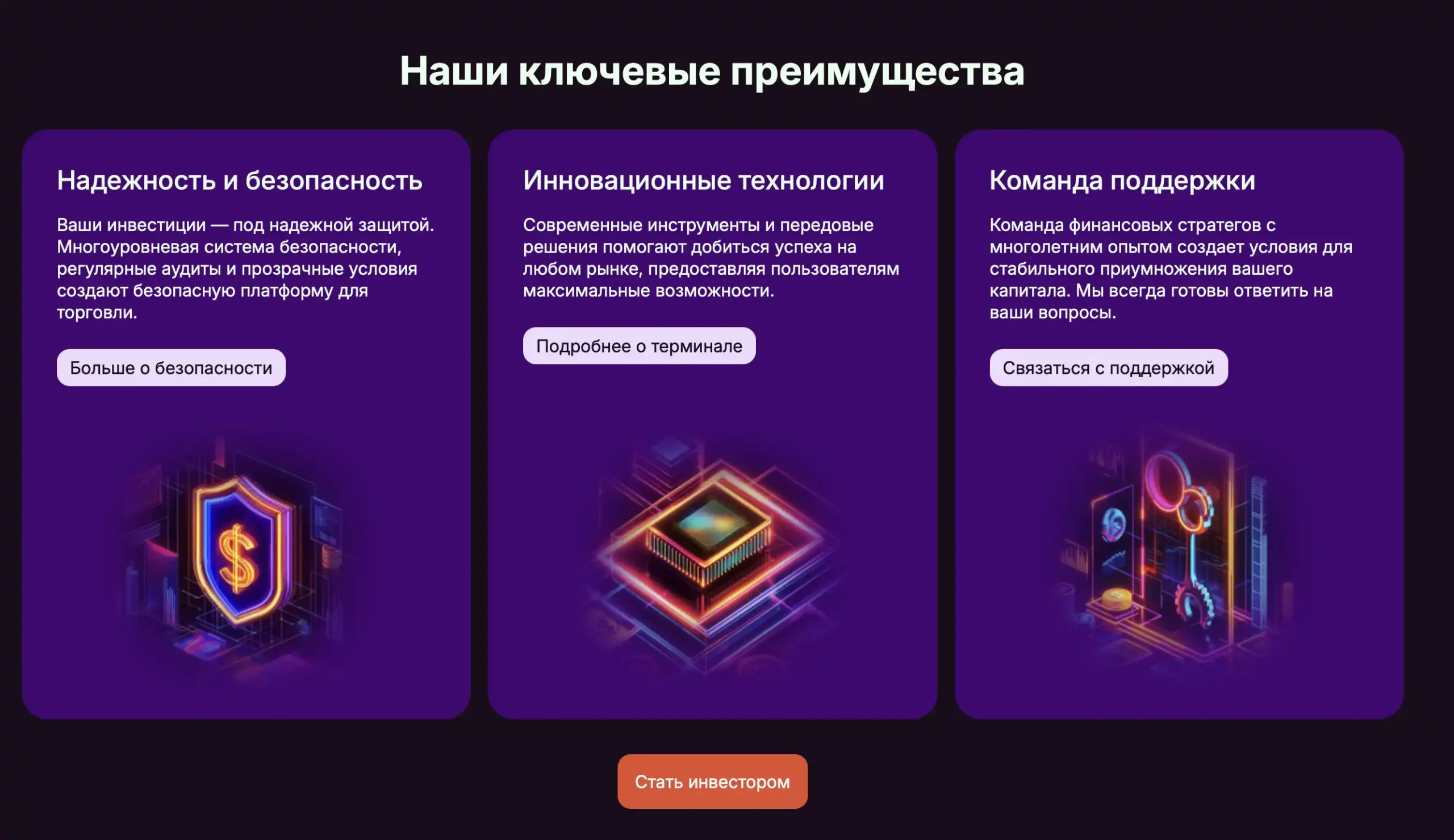 Прозрачность условий. Условия работы, особенно в части торговли, вывода средств, комиссий и бонусов — описаны не полностью или слишком осложнённо, что усложняет проверку перед вложением.