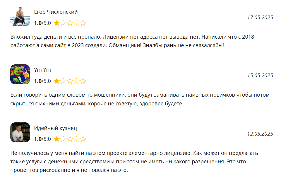 Отзывы подтверждают: проблемы с выводом, психологическое давление, непрозрачные условия и высокий риск потери средств. Любая привлекательная маркетинговая кампания и обещания быстрого дохода не заменяют безопасности. С платформой нужно быть крайне внимательным: проверять каждое действие и не поддаваться на заманчивые обещания, иначе можно остаться без вложений.