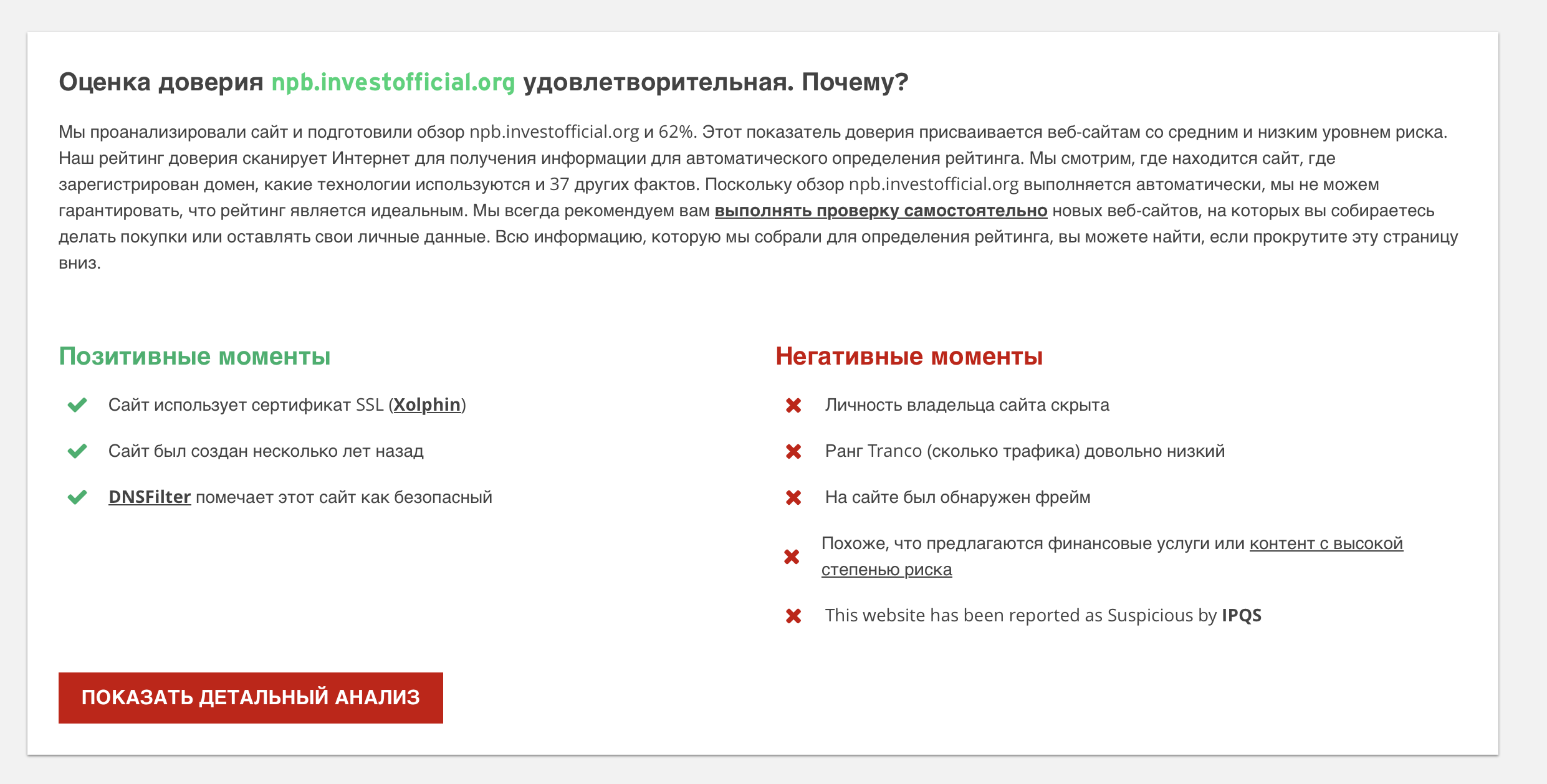 В случае с npb.investofficial.org подобная информация либо отсутствует, либо представлена в размытом формате. Отсутствие реальных документов — серьёзный сигнал, который не стоит игнорировать.