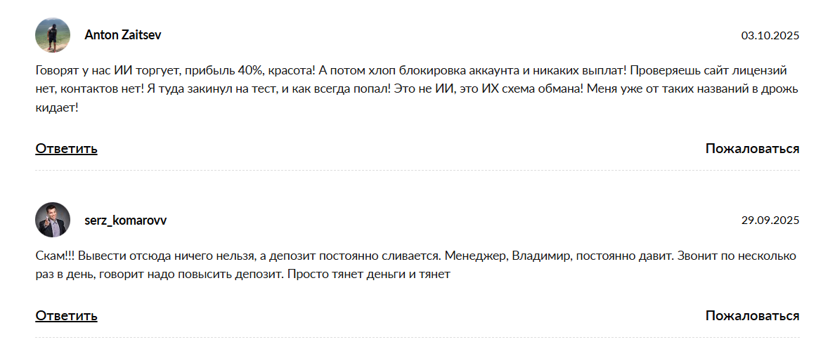 Когда доходит до возврата вложений, начинаются стандартные истории: “необходима проверка данных”, “технические работы”, “комиссия за транзакцию”. Чаще всего эти формальности так и не заканчиваются, а деньги остаются в системе. Весь процесс построен так, чтобы затруднить вывод и максимально задержать средства пользователя.