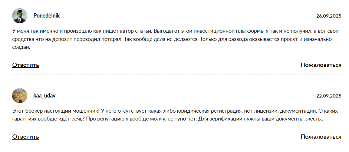 Отзывы о PrimeGlobalInvestment подтверждают: трудности с выводом, давление на инвесторов и отсутствие лицензий делают платформу сомнительной. Красивый сайт и маркетинговые обещания не заменяют реальной безопасности. Любая инвестиция здесь сопряжена с риском, а доверять проекту свои деньги — крайне рискованно.