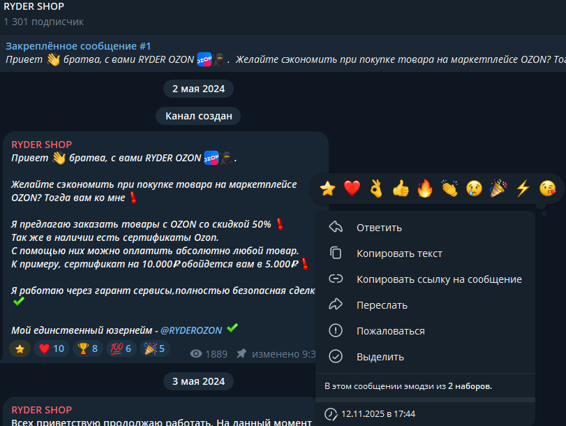 В профиле группы t.me/ryderozn полностью отсутствует описание. Это выглядит не просто странно, а максимально подозрительно для паблика. Никаких целей, правил или хотя бы приветственных слов для новоприбывших искателей выгоды. Вас просто бросают в ленту с обещаниями золотых гор без малейших пояснений.