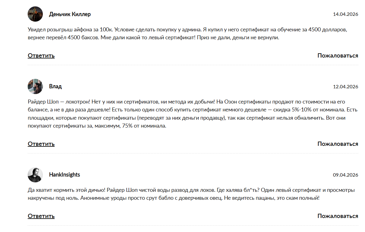 Найти конструктивные Ryder Shop отзывы от реальных людей просто невозможно. Зато на профильных форумах представители индустрии заявляют прямо: за проектом стоят искатели легкой наживы. Наша редакция считает ресурс крайне сомнительным. Ввязываться в эту мутную историю с переделанными постами — себе дороже.