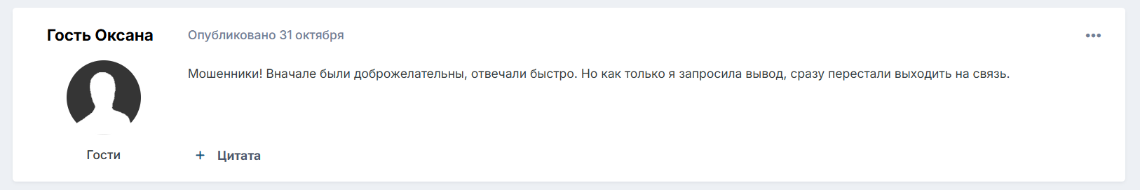 Отзывы подтверждают: сложности с выводом, психологическое давление, непрозрачные условия и высокий риск потери средств. Любые маркетинговые обещания быстрого дохода не заменяют безопасности. С платформой нужно быть максимально внимательным: проверять каждое действие и не поддаваться на заманчивые обещания, иначе можно остаться без вложений.