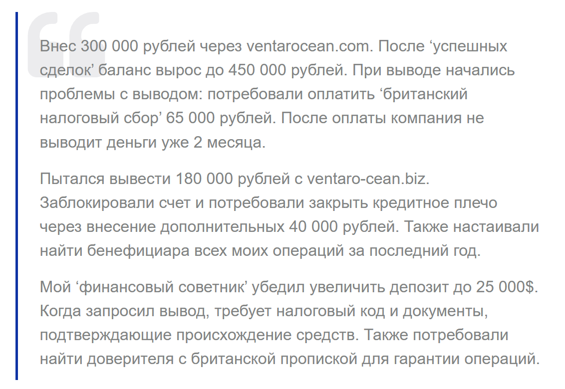 Неважно, как красиво вам рисуют перспективы — реальность говорит сама за себя. Ventarocean — очередная платформа, где прибыль видят только на картинках.